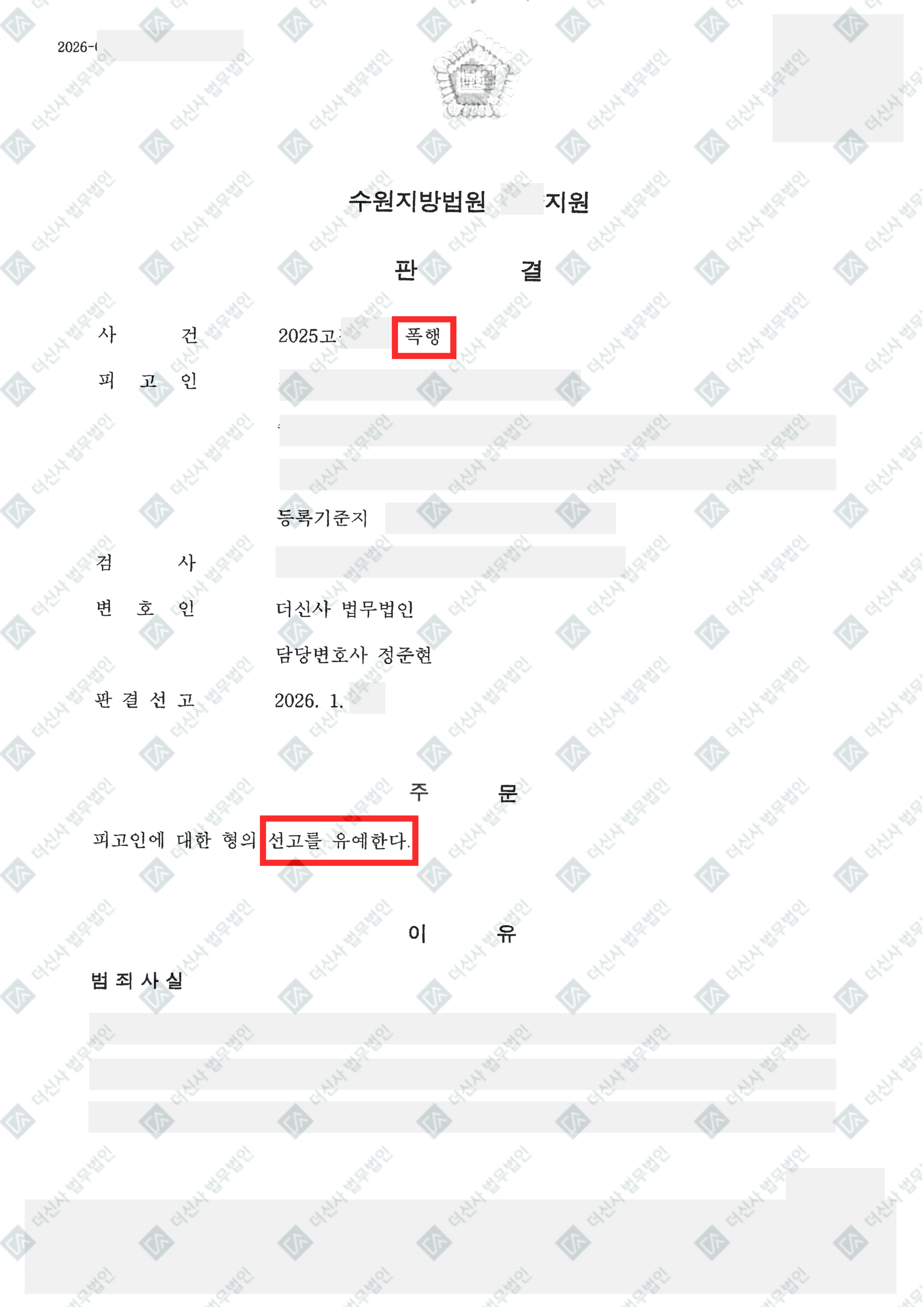 형사 [폭행] 선고유예 - 수원지방법원