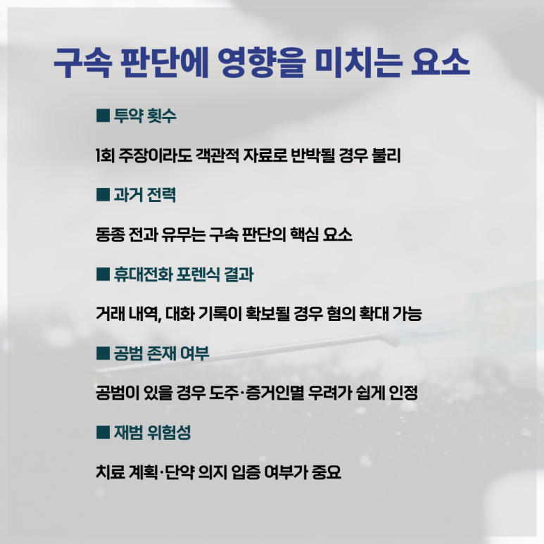 투약량이 많지 않거나 단 1회에 그쳤다고 하더라도, 수사기관은 원칙적으로 구속 가능성을 열어 둔 채 절차를 진행하는 경우가 대부분입니다.