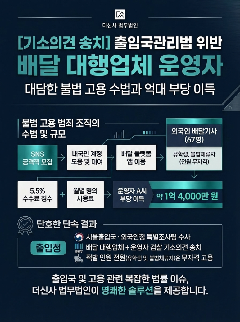 업주라면 지금 바로 고용 구조를 점검하고, 외국인 라이더라면 강제퇴거·재입국 금지라는 돌이킬 수 없는 결과가 생기기 전에 선제적으로 전문가의 도움을 받으시기 바랍니다.